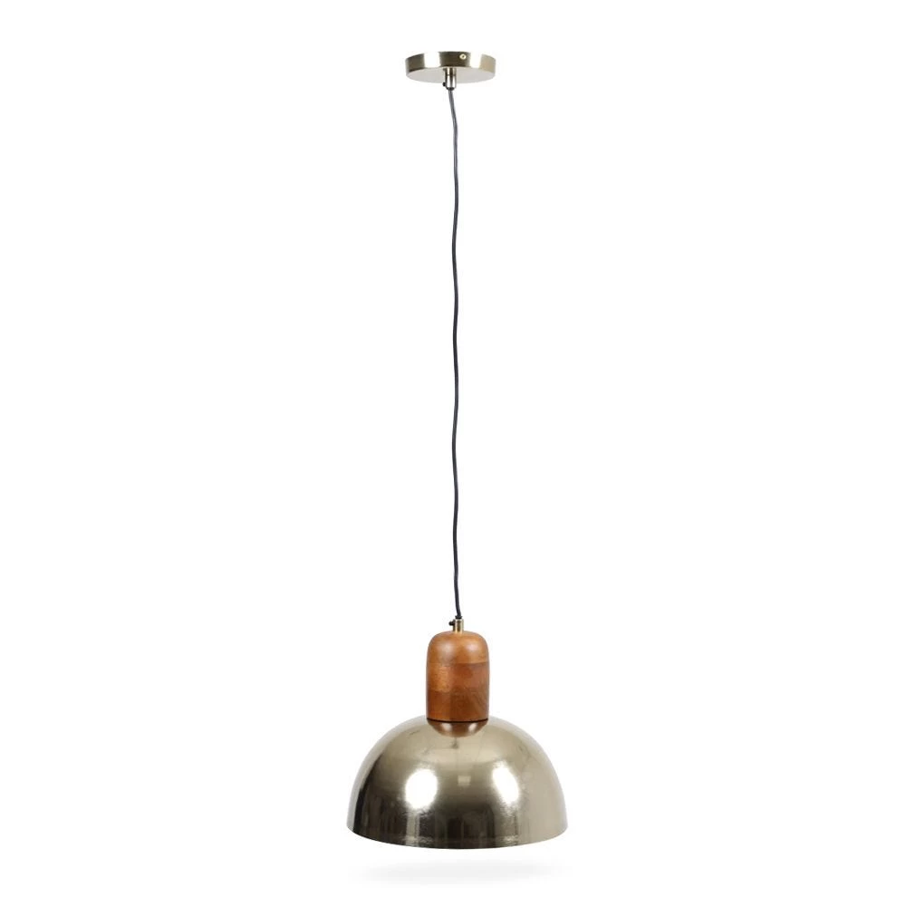 This hanging lamp brings the finesse and illumination you need in your living space. Made with a combination of metal and mango wood, this dome-shaped hanging lamp possesses a shiny finish for added flair.
