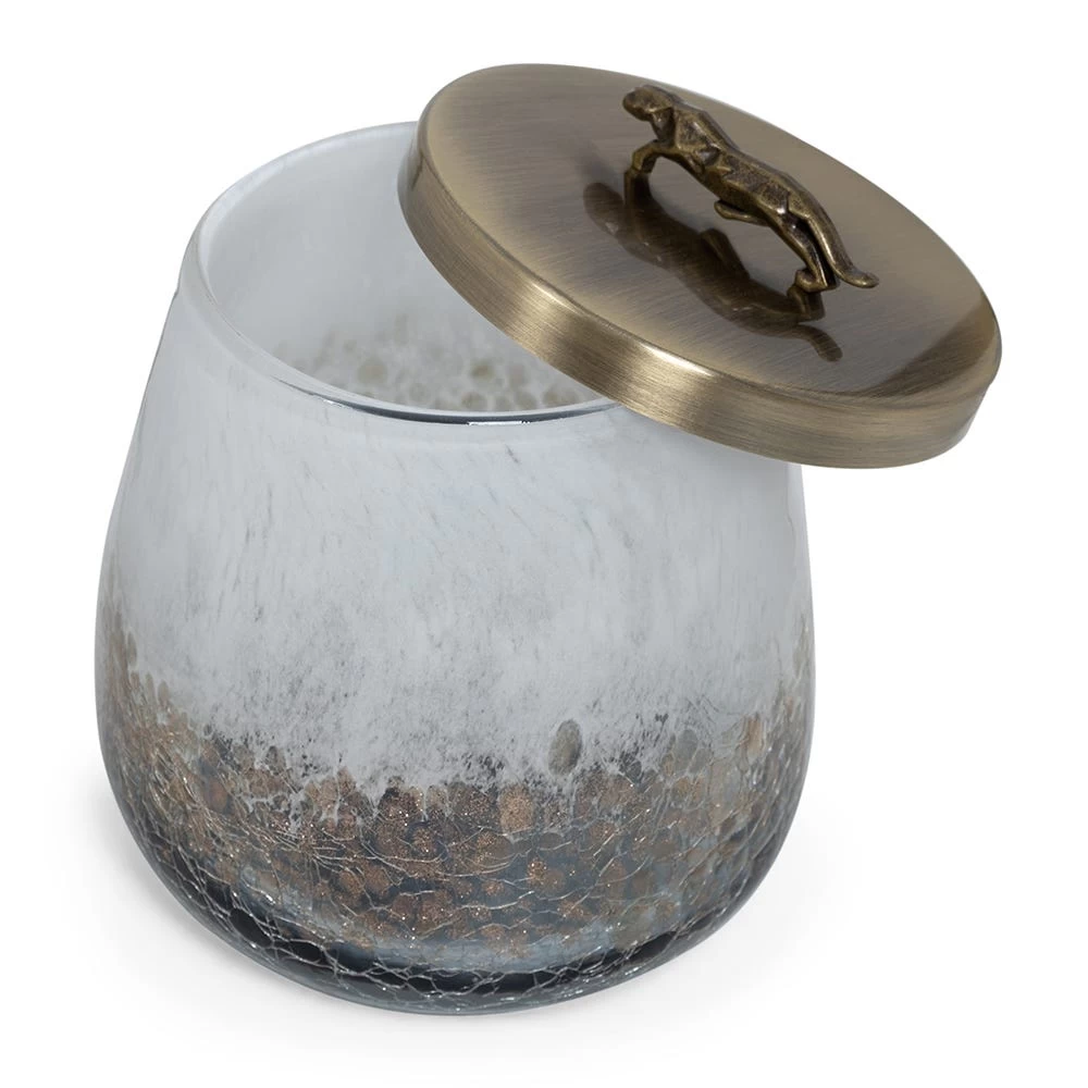 Amp up the overall aesthetic appeal of your tables with this handblown glass vase from the Oasis collection. It showcases exquisite detailing emanating an ocean-like effect, which amplifies its sophisticated vibes. This vase has a lid with a unique accent on its top, making it an elegant choice for preserving miniature essentials and displaying flowers.
