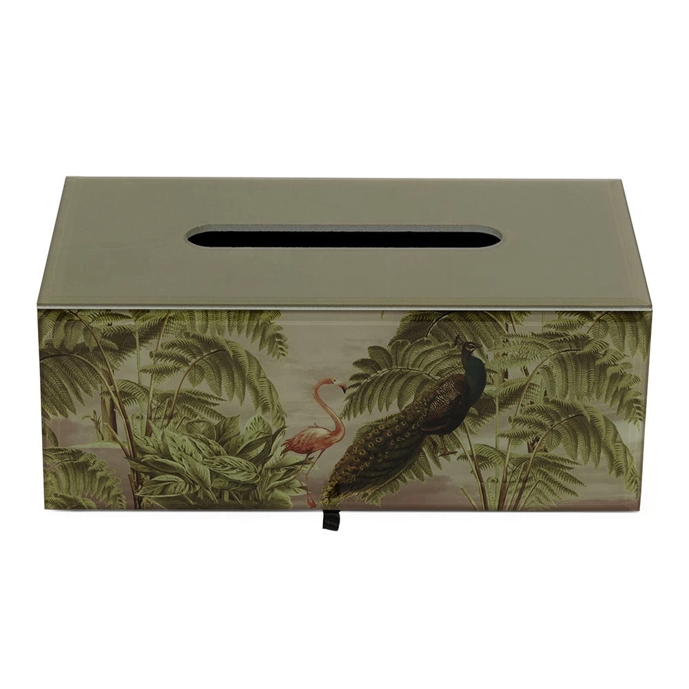 Usher in a touch of timeless elegance to your space with this elegantly designed tissue cover. Crafted from MDF and glass, it features an alluring forest-themed graphic on the surface. It makes a lovely addition to your kitchen or bathroom countertops and adds character to your office desk.