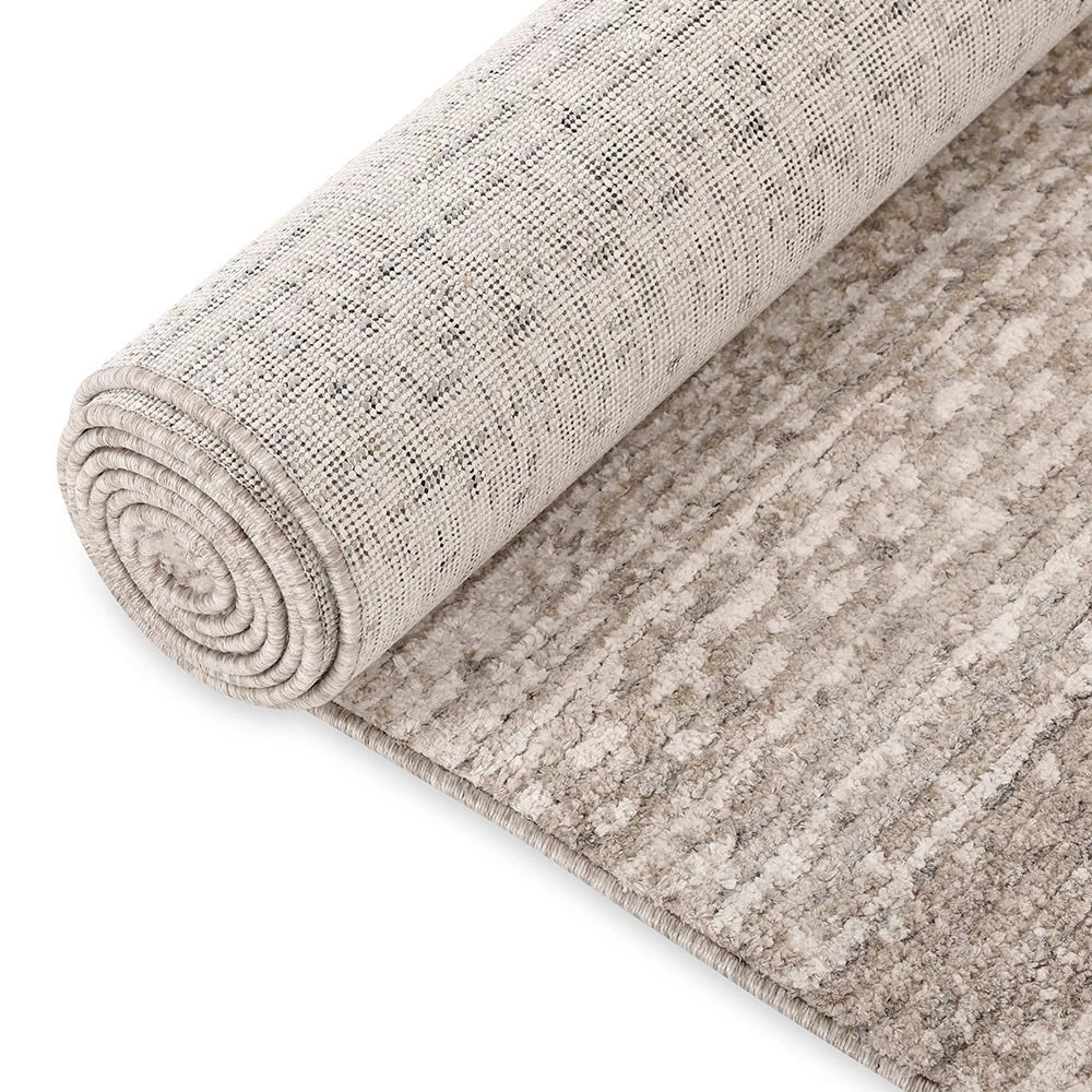 Upgrade the look and feel of your living space with this incredible cream and grey-hued carpet. Stylish and contemporary, its unique design with foldable ends is inspired by modernism in the art to create a harmonious and calming ambience. Its quality construction ensures long-lasting beauty and makes it the perfect pick for uplifting any decor scheme.