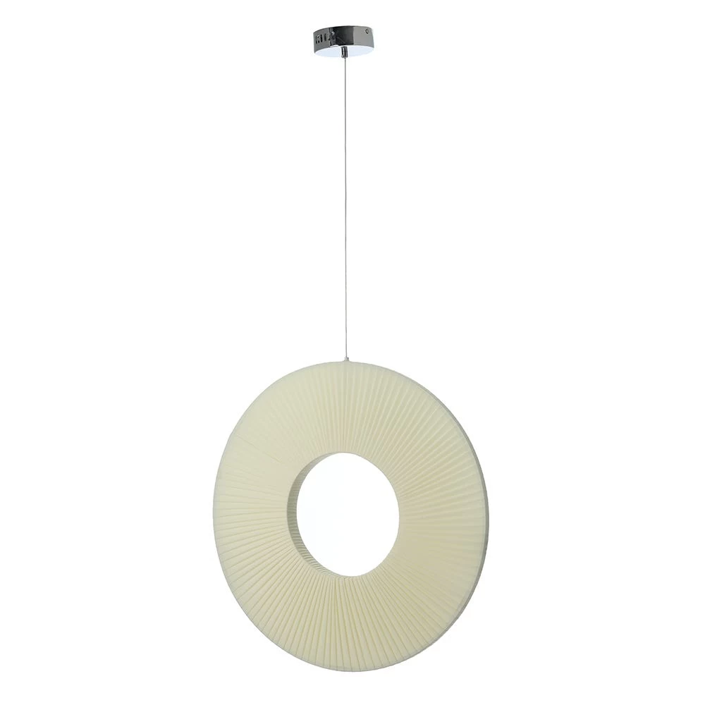 Featuring a large-sized LED-infused light ring, this pendant lamp will be a sparkling addition to your modern home. Supported by a metal frame, the pendant lamp highlights a perfect pleated fabric design on the façade.