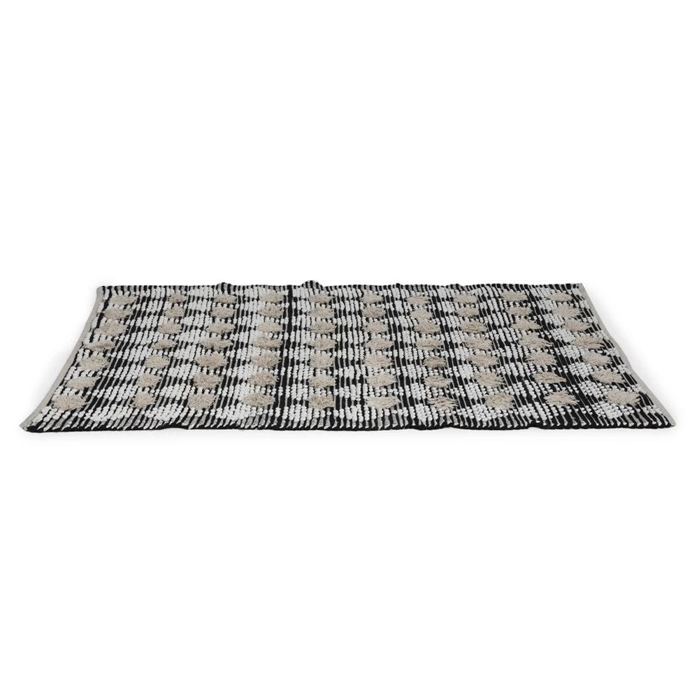 This handwoven, textured rug with an assortment of tufted accents and hand-knotted loops is an art for your floors. The black hue beautifully contrasts with the neutral tones of the cotton yarns and makes a beautiful piece for your home altogether.