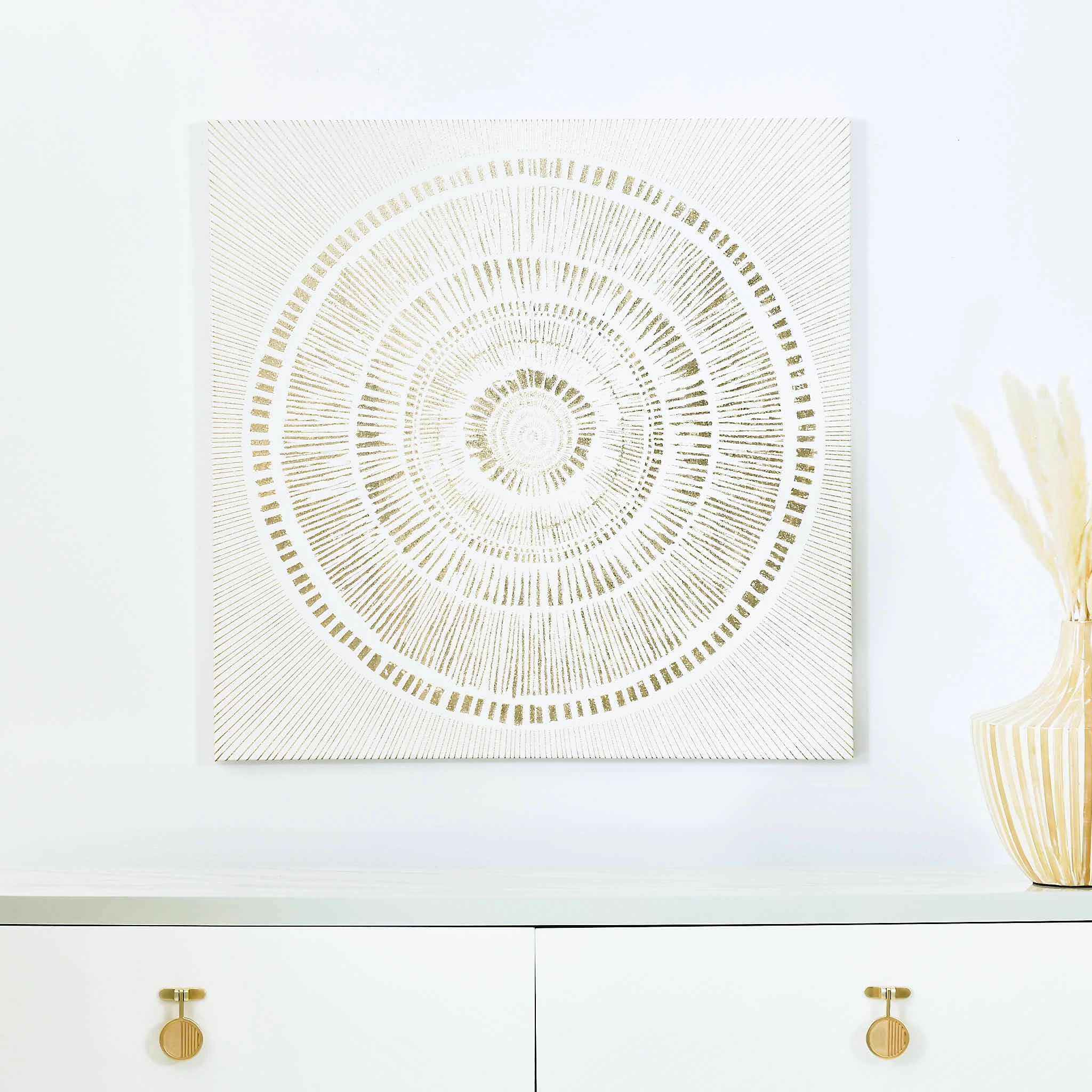 Experience the beauty of art like never before with this unframed wall art. The circular design and printed canvas style give this piece a truly unique look that is sure to leave you awe-inspired. With its sleek design and 3D foil detailing, this art piece is perfect for those who appreciate modern art with a touch of elegance.