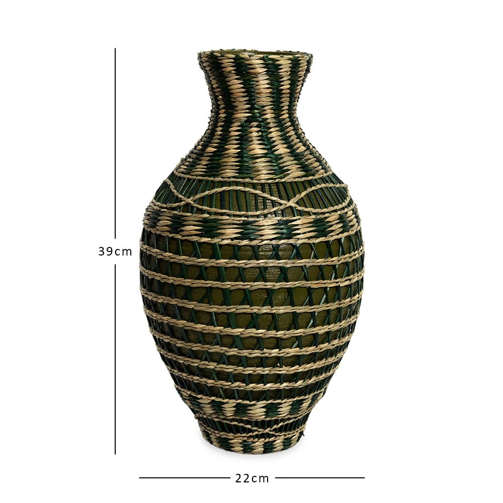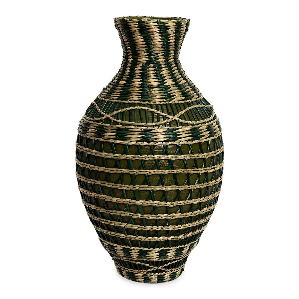An exquisite display of luxury and elegance boasting a harmonious blend of yellow, green, and natural hues to accentuate any space it graces. Crafted by skilful craftsmen with years of experience and a creative mind, this lacquer bamboo vase is adorned with beautiful seagrass wicker detailing around the middle. Pair the vase with fresh white flowers or tall, leafy greens for a chic and sophisticated look.