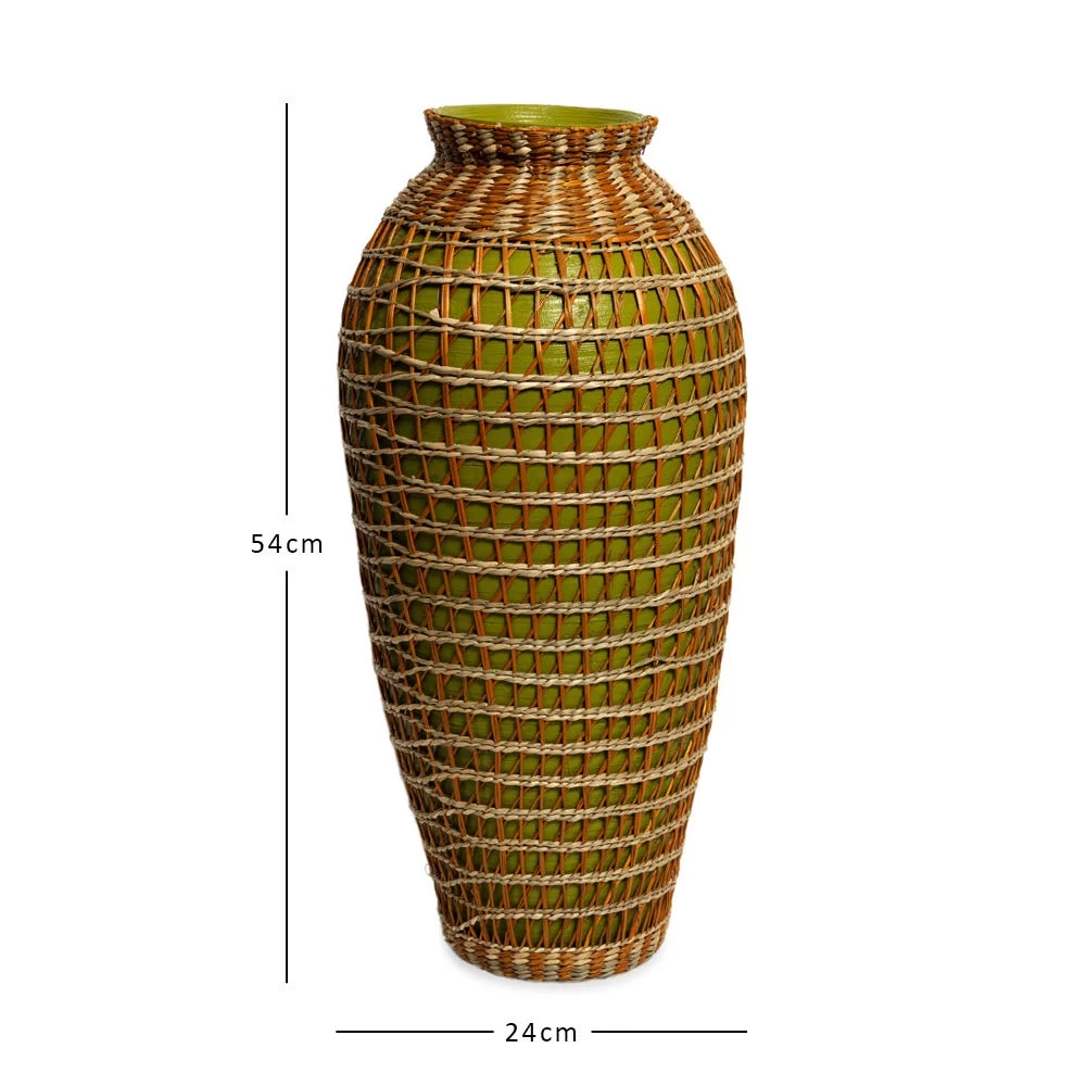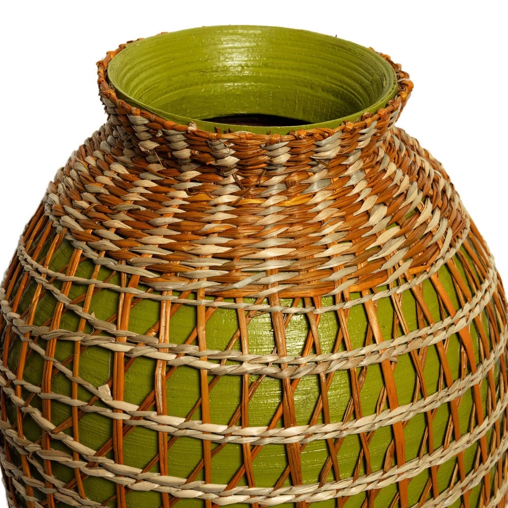 An exquisite display of luxury and elegance boasting a harmonious blend of yellow and natural hues to accentuate any space it graces. Crafted by skilful craftsmen with years of experience and a creative mind, this lacquer bamboo vase is adorned with beautiful seagrass wicker detailing around the middle. Pair the vase with fresh white flowers or tall, leafy greens for a chic and sophisticated look.