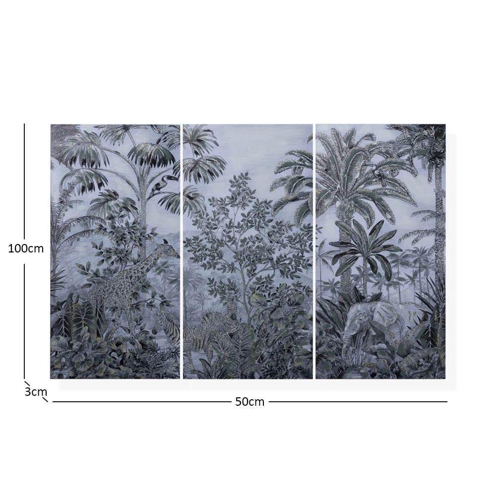 Uplift your wall decor with this avant-garde jungle-themed printed art. This artwork’s exceptional design will make a statement in your home or workplace with its intriguing elements of nature and animals.