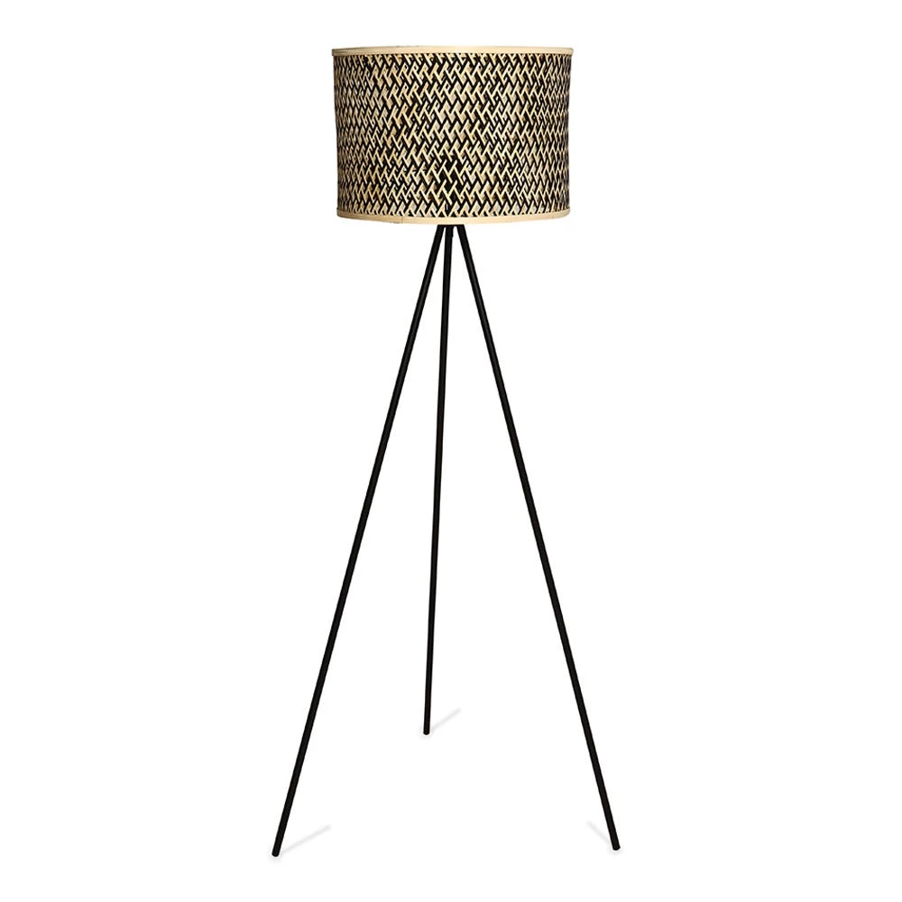 Decorate your living space with unparalleled grandeur by adding this astonishing rattan floor lamp. This contemporary lighting collection is designed on a sturdy base and topped with a natural fabric lampshade with geometric accents and abstract artwork that exudes unquestionable sophistication.