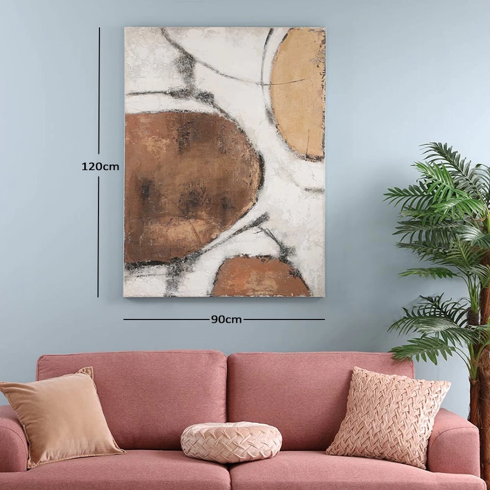 Let this beautifully hand-painted wall art bring the brilliancy of modern aesthetics to your home. Showcasing textured details and earthy hues, this oil-based canvas art piece is sure to complement your contemporary space.