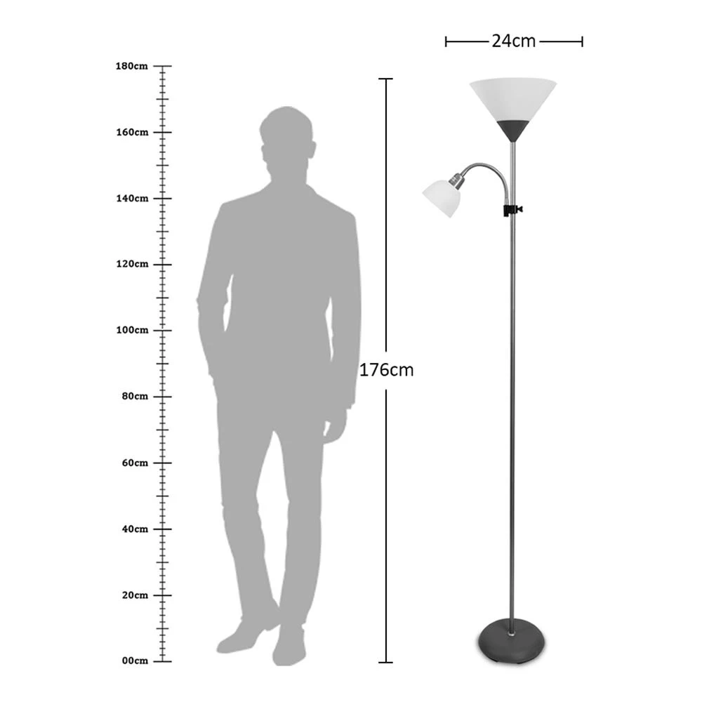 An elegant and classic floor lamp that beautifully accents any room and complements any design style. Made of high-grade metal, the lampshade can easily be tilted to direct the light in whatever direction you desire, making it an ideal choice to illuminate any space. Add E27 and E14 bulbs to this unit to disperse light.