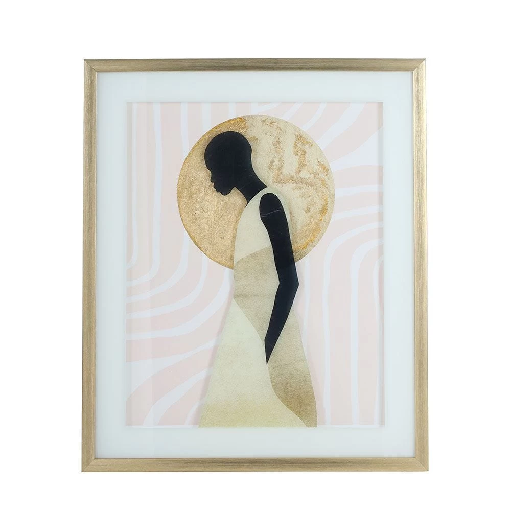 Your modern home needs the ornamentation of elegant and modern wall art pieces. This framed art features the sun beaming down on a young lady. The art piece has gold foil details in the sun that make it more intriguing.
