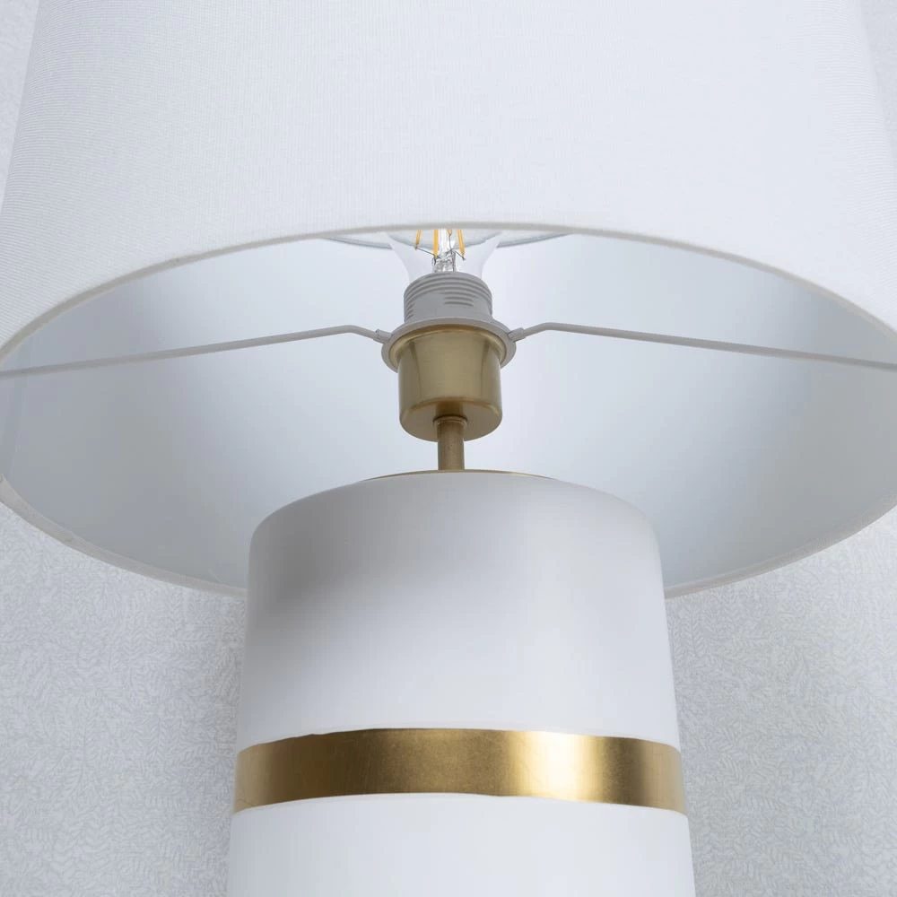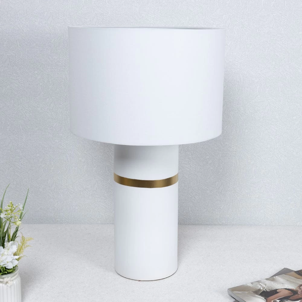 Radiating a serene charm, the mere sight of this sania ceramic lamp is aesthetically appealing. The pot-like silhouette and sturdy base are crafted using quality ceramics and are furnished with a clean finish. The lampshade fabric on top adds an intriguing interest to the appearance and makes it a minimalist piece to match any decor.