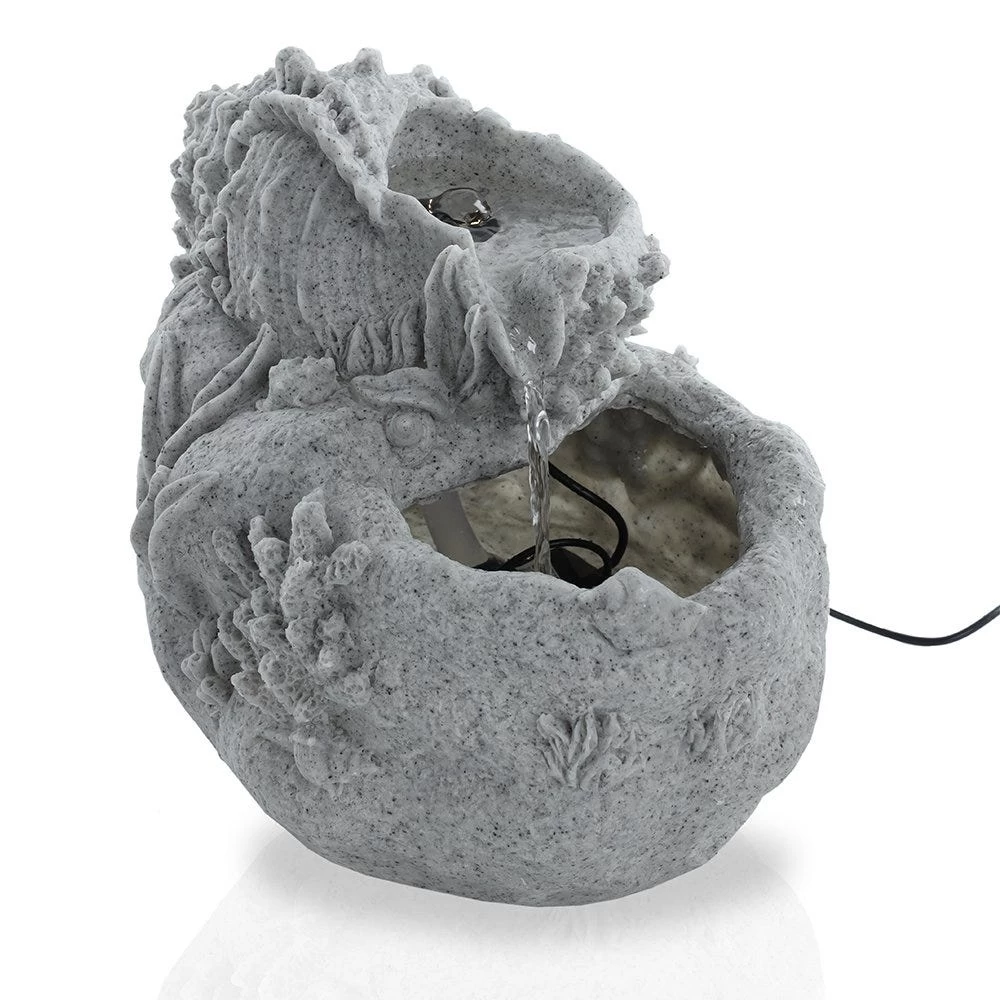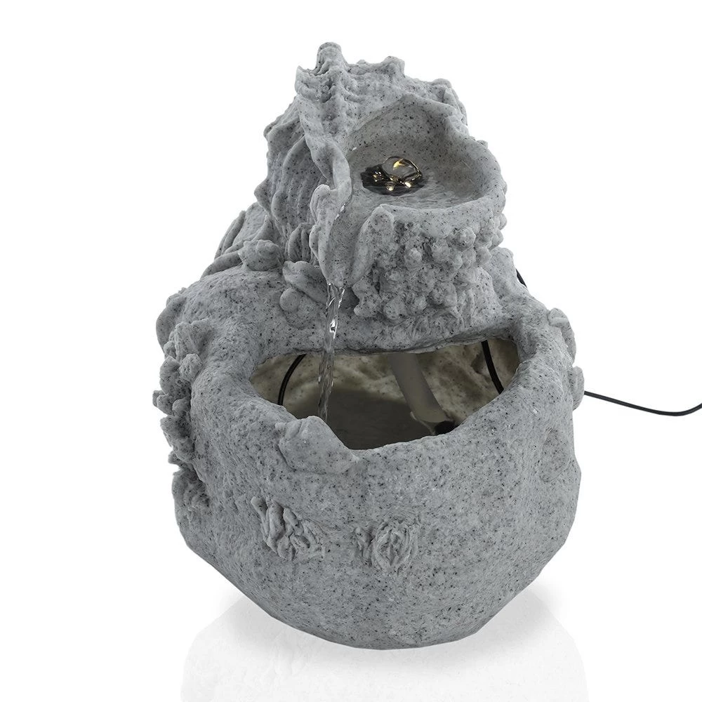 This shell fountain is inspired by the sea. Handcrafted and grey-hued, it imbues a fairytale-esque touch to your outdoor or indoor space.