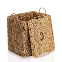 Water Hyacinth Tall Basket With Lid, Natural – 36 X 29 X 41 Cms