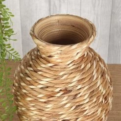 Rena Handcrafted Bamboo Hyacinth Vase, Natural & White β Small