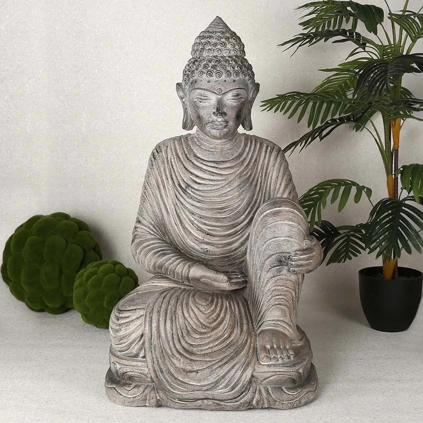 Add personality to your living space with this stunningly crafted sitting Buddha figurine. With a rustic appearance and attention to detail, this figurine promises to enhance the ambiance of your home and bring peaceful vibes.