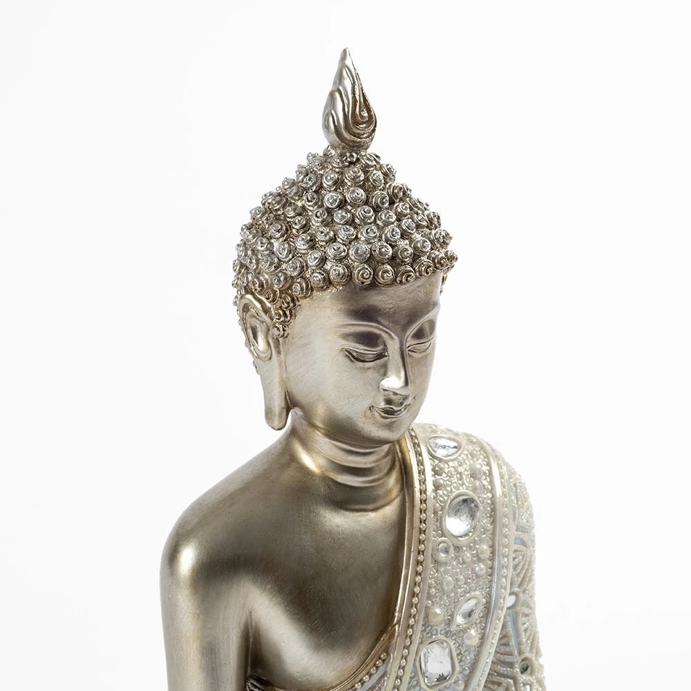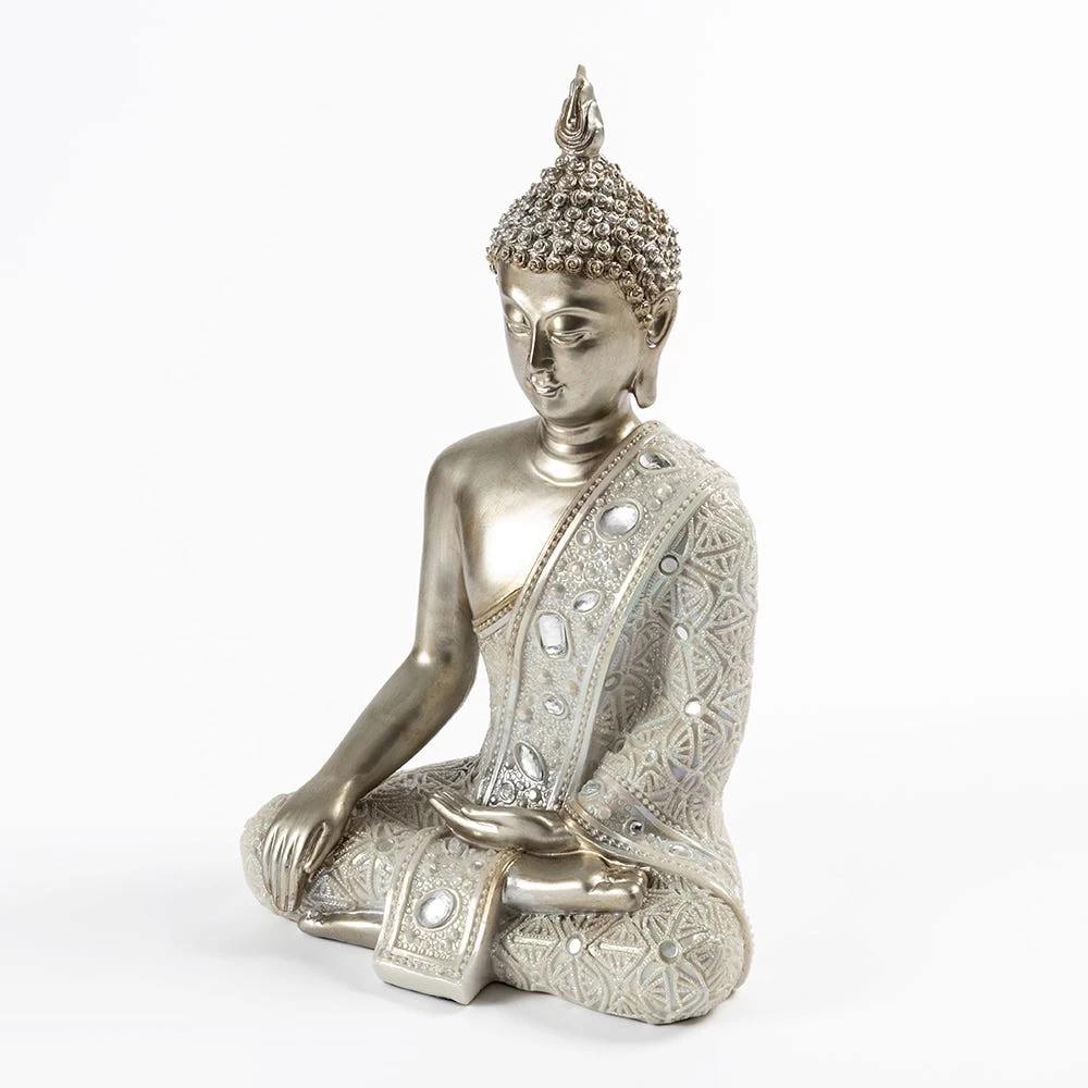 Lend a touch of serenity and calmness to your home or office space with this magnificent sitting Buddha decor accent. Handmade with intricate attention to detail, its striking Buddha design is sure to captivate anyone who lays eyes on it. The stunning painting and foil finish, combined with stone detailing, make this decor accent an absolute masterpiece.