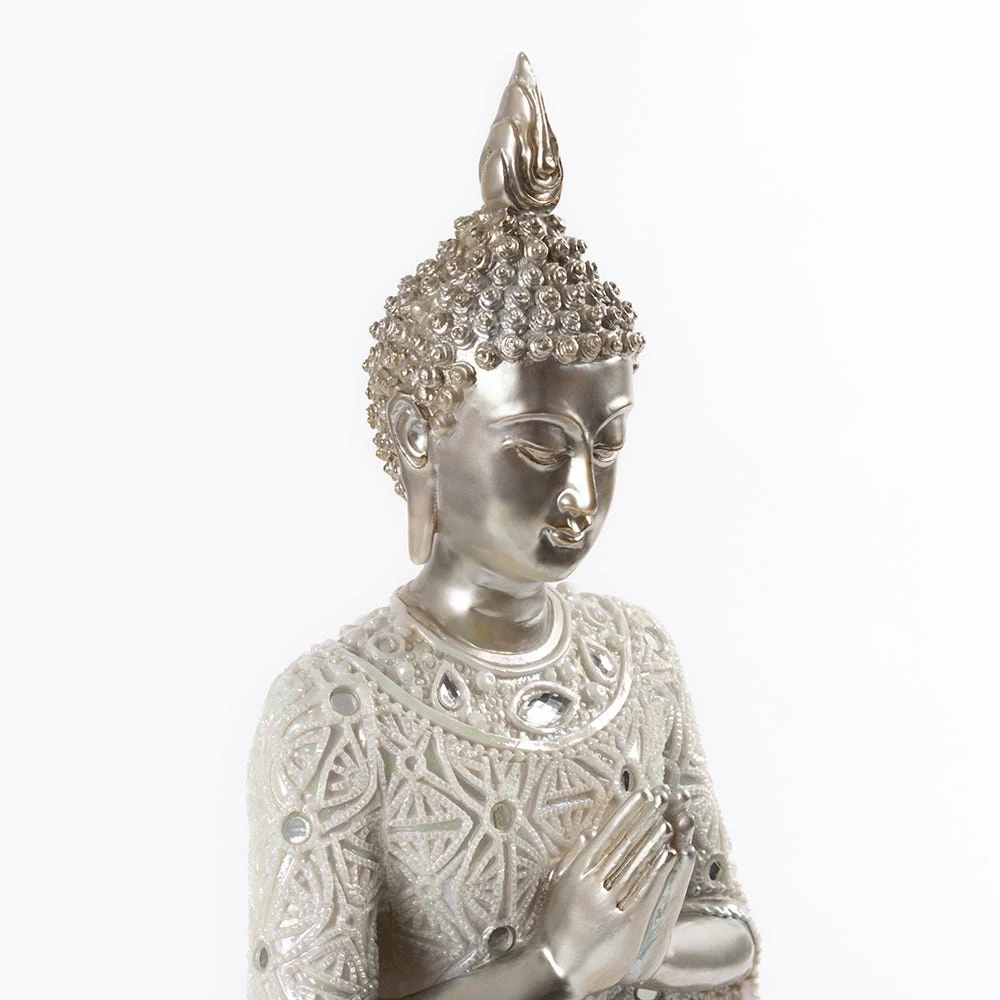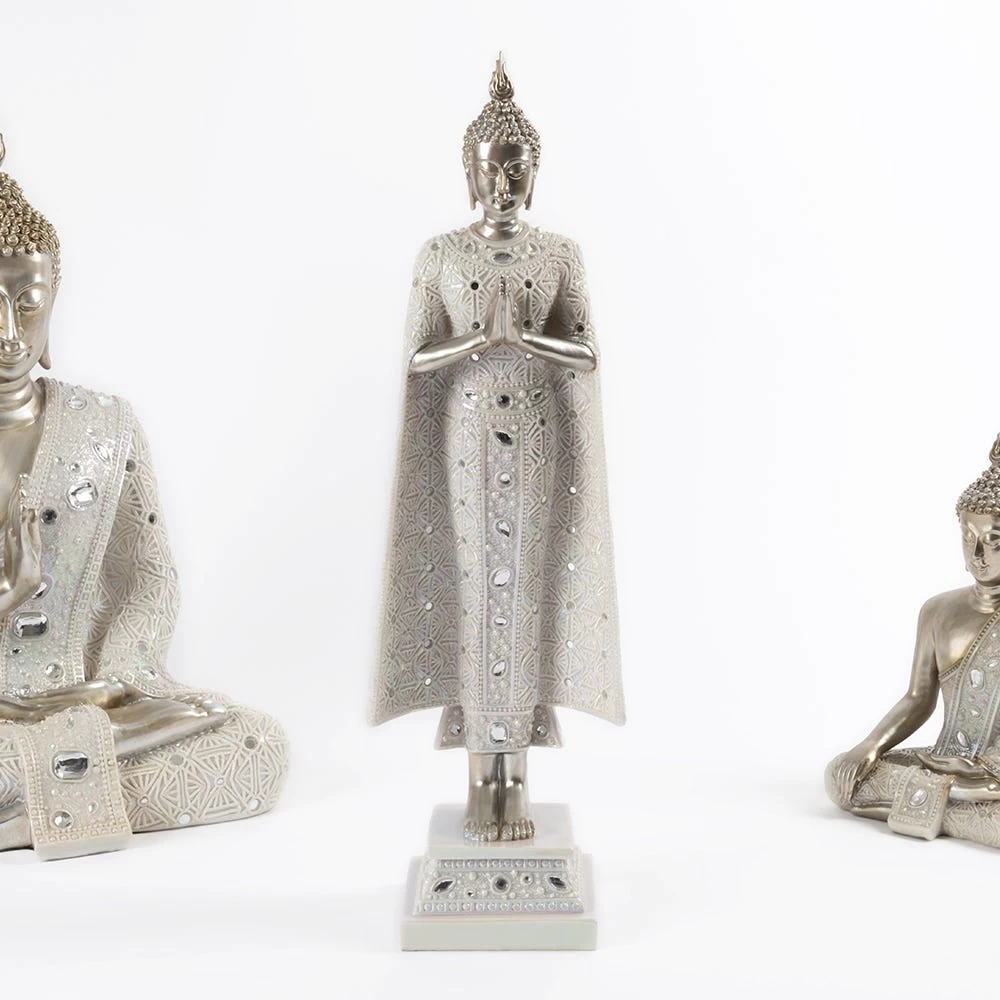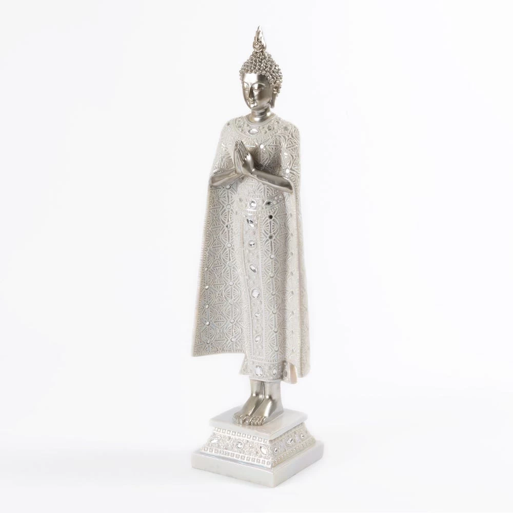 Lend a touch of serenity and calmness to your home or office space with this magnificent standing Buddha decor accent. Handmade with intricate attention to detail, its striking Buddha design is sure to captivate anyone who lays eyes on it. The stunning painting and foil finish, combined with stone detailing, make this decor accent an absolute masterpiece.