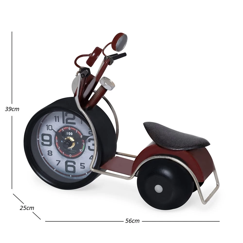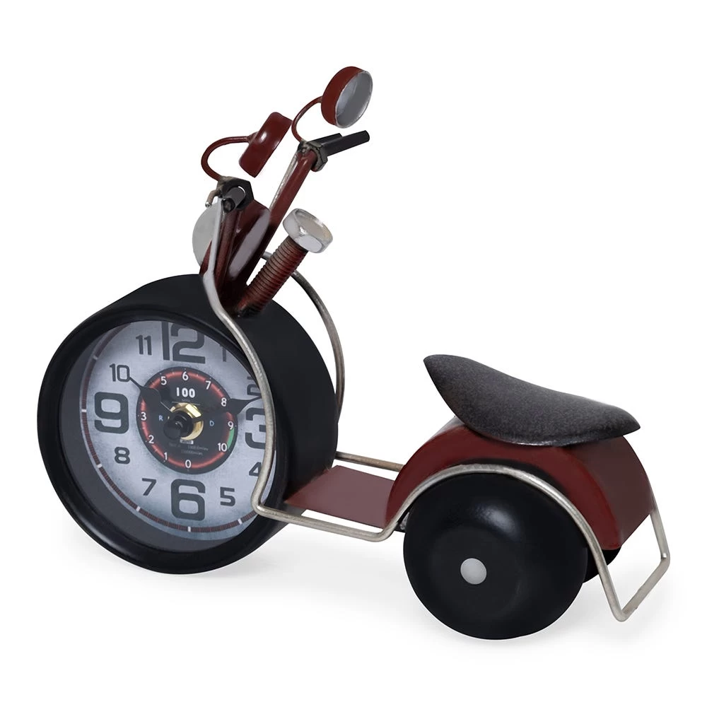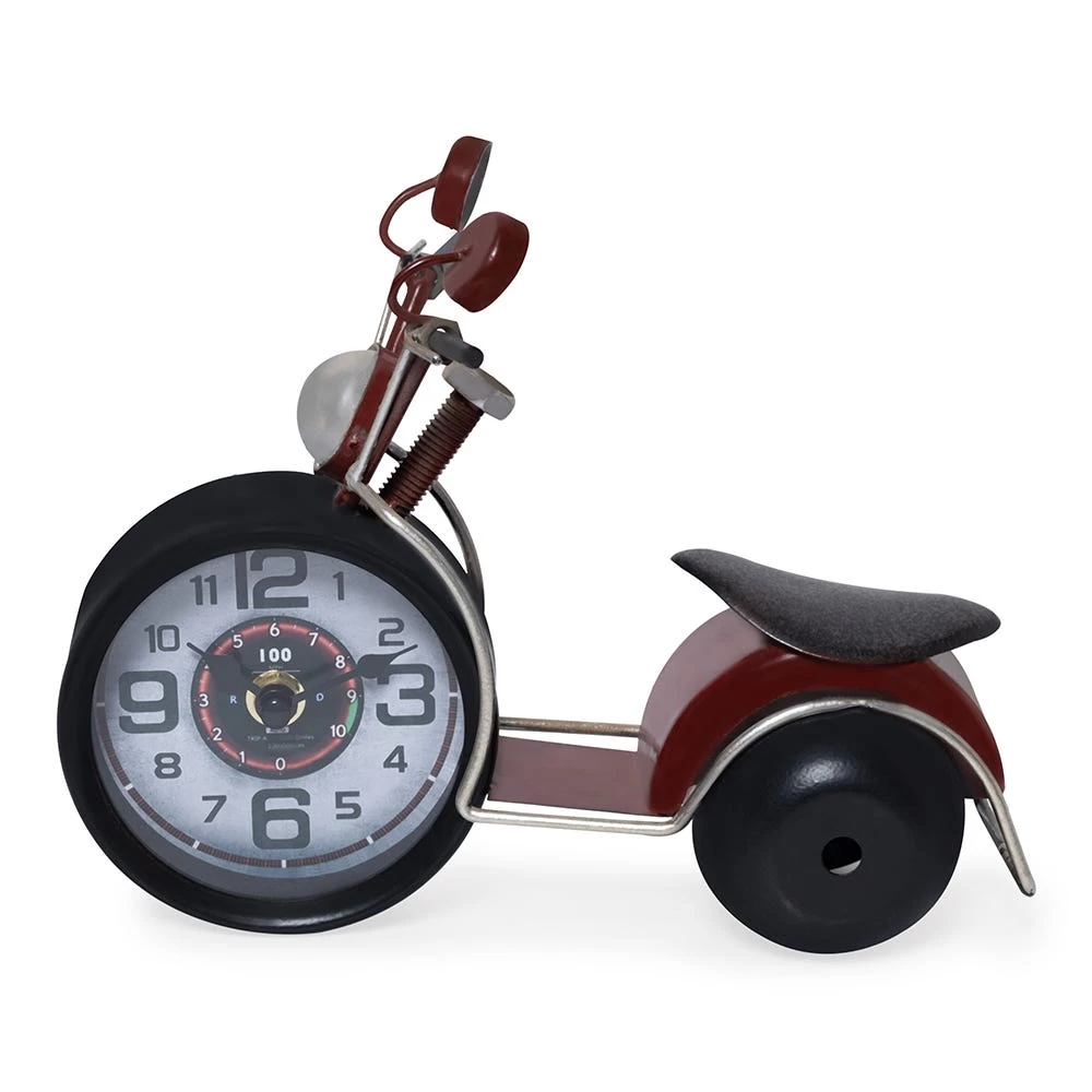 This table clock is a unique combination of art, design, and function to add to any room of your house or office for a stunning look that will stand out above the crowd. The stylish clock features a large dial and scooter-inspired design.