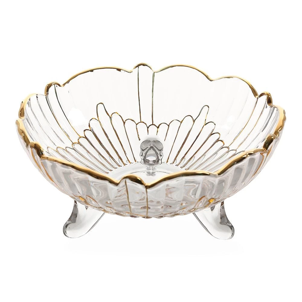 A great piece to elevate your table aesthetics, this glass plate also makes for perfect serveware. Standing atop sculptural legs, this lead-free glass designer plate is highlighted with a striking streak design. The golden rim adds to the beauty of this glassware.