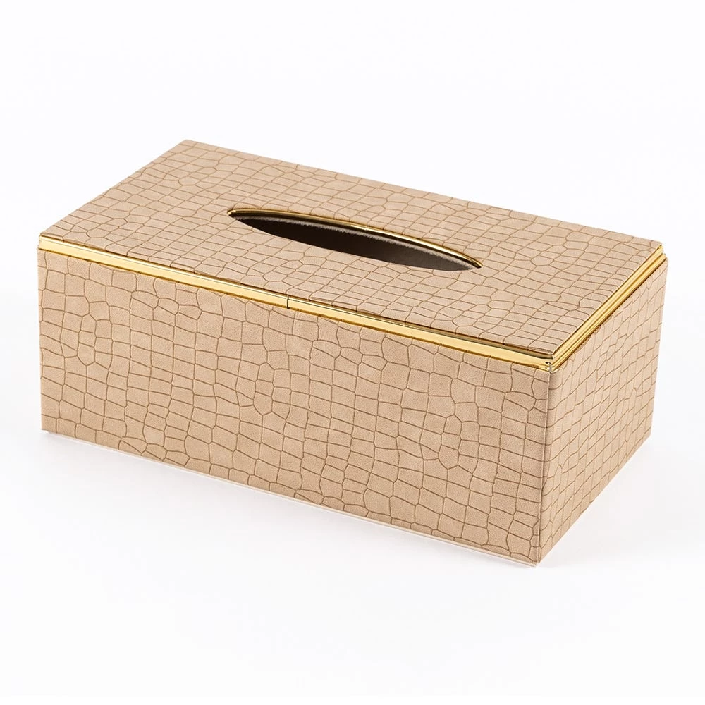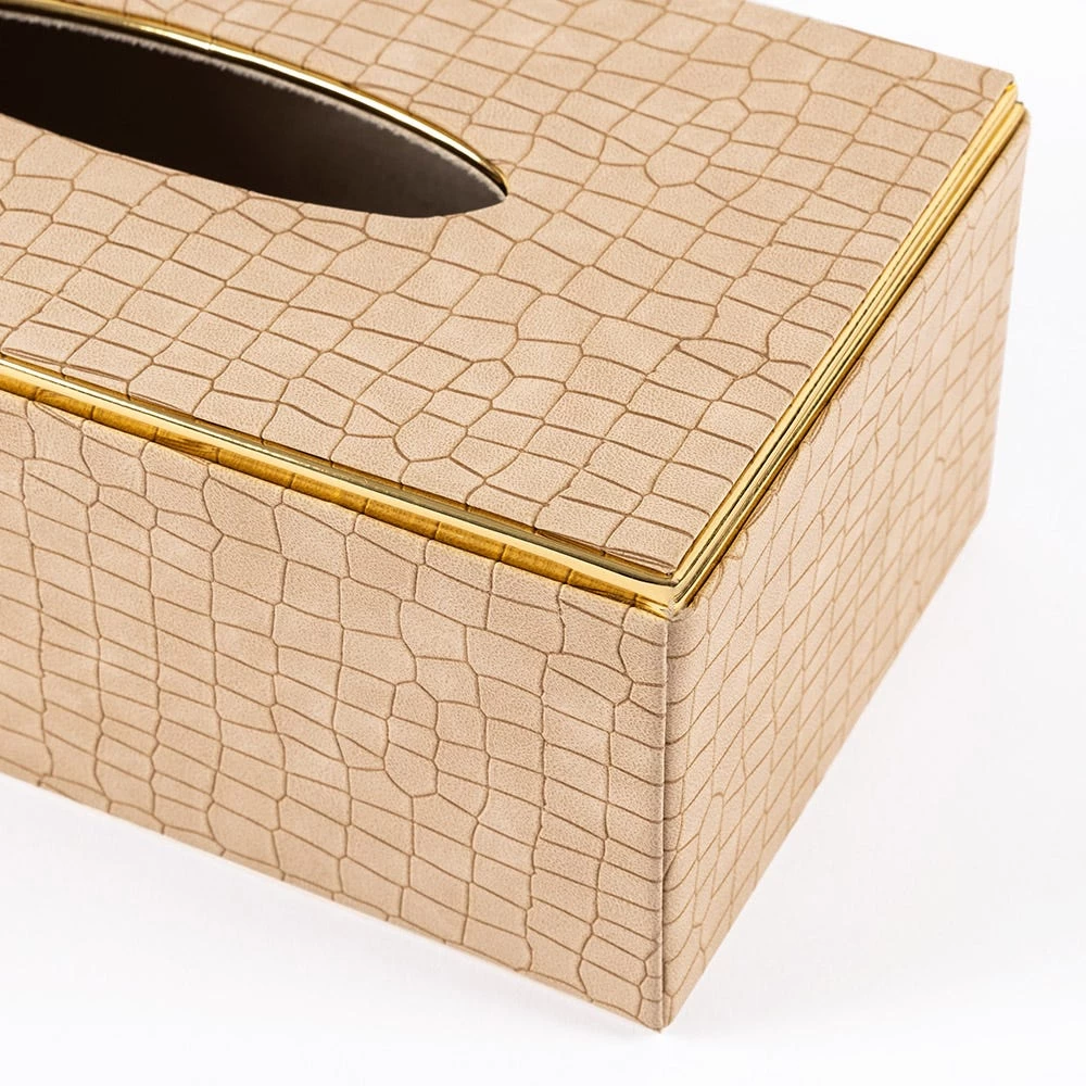 Discover the perfect balance of opulence and functionality with this intricately crafted and perfectly sized tissue box. It’s rectangular shape and golden flair around the edges perfectly blend style and practicality. Keep it on your nightstand, coffee table, or vanity for easy tissue access while adding a stylish touch to your space.