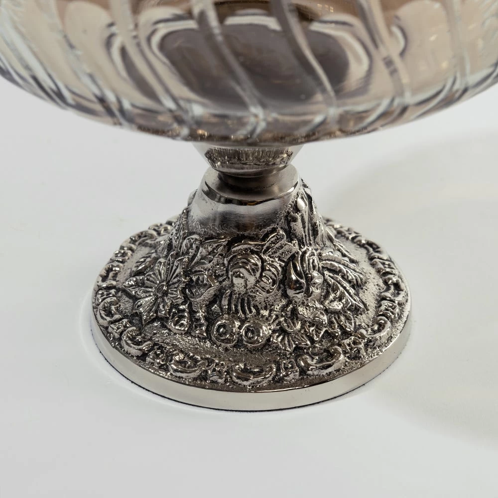 Embrace the divine spirit of Ramadan with this exquisite decor jar and transform your living space into a luxurious oasis. With smoke-cut glass construction adorned with an intricate design and lacquer finish, this antique decor jar features a lid that brings a feeling of magnificence to any space. Place it alongside your sofa for an elegant look, or use it as a decorative centrepiece to accessorise your table.