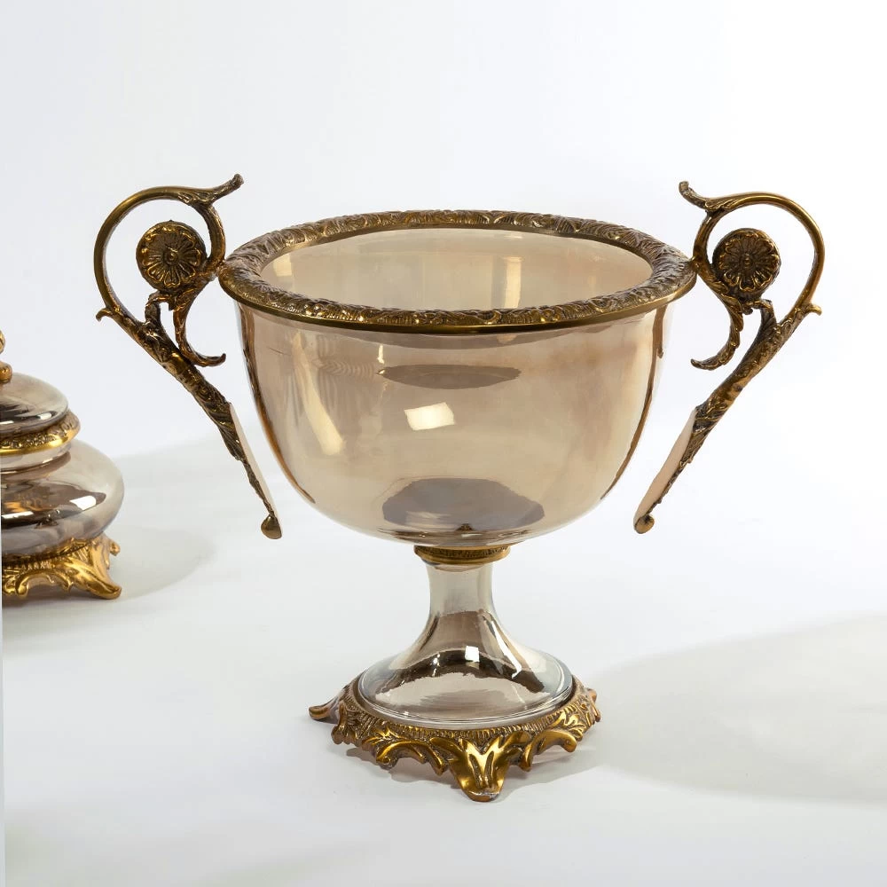 Get ready for the auspicious month of Ramadan by transforming your space with the addition of this beautiful, antique-style decor bowl. It features an elegant glass body adorned with metallic handles, an embellished base, and a golden-hued rim. Whether you use it as an elegant decorative centrepiece or simply to imbibe royalty, this work of art will surely enhance your home’s aesthetics.