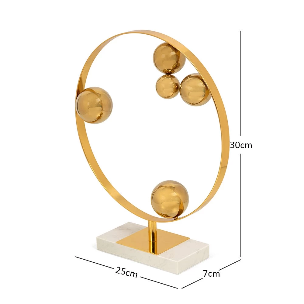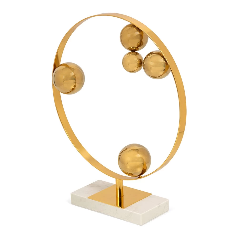 Emanate a warm, all-decked-out atmosphere in your abode by decorating with this decorative accent. This beautiful accessory features a circle adorned with glossy golden-hued balls in varying sizes. Supported by a marble pedestal, this accent exudes minimalism with its contemporary design and detail.