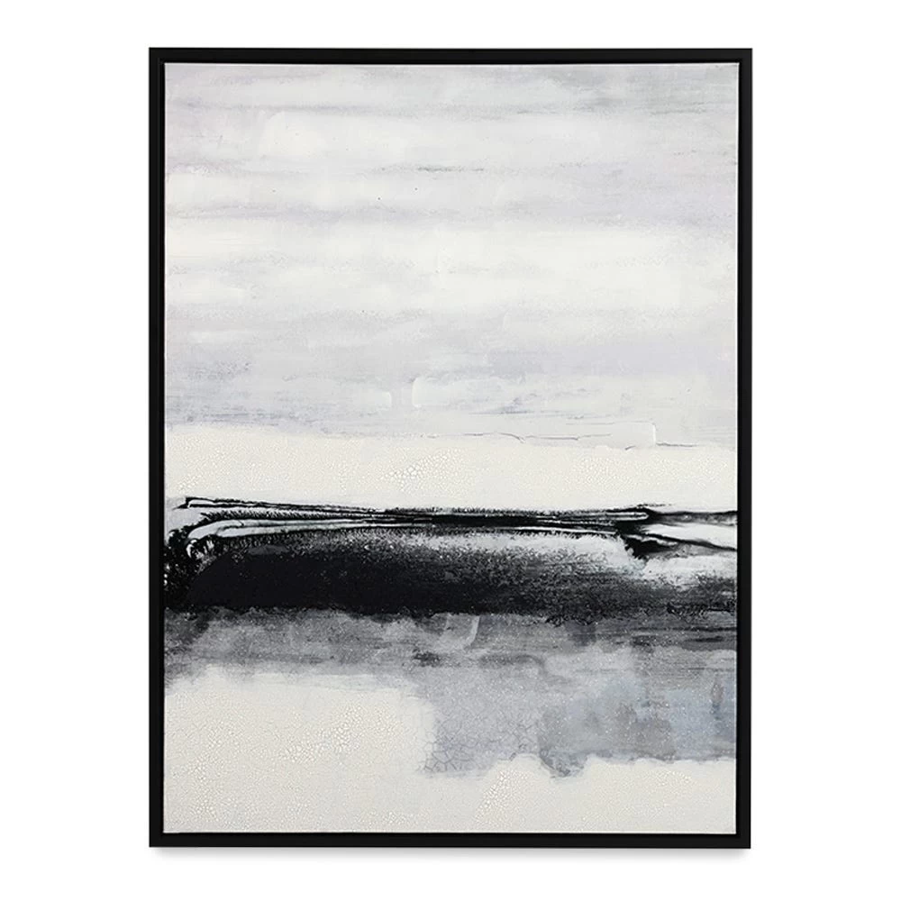 This monochrome display is created to draw attention to the textured strokes and details of acrylic colours. Blending perfectly with any modern-day or eclectic décor theme, this framed, abstract canvas art can highlight any space in a room.