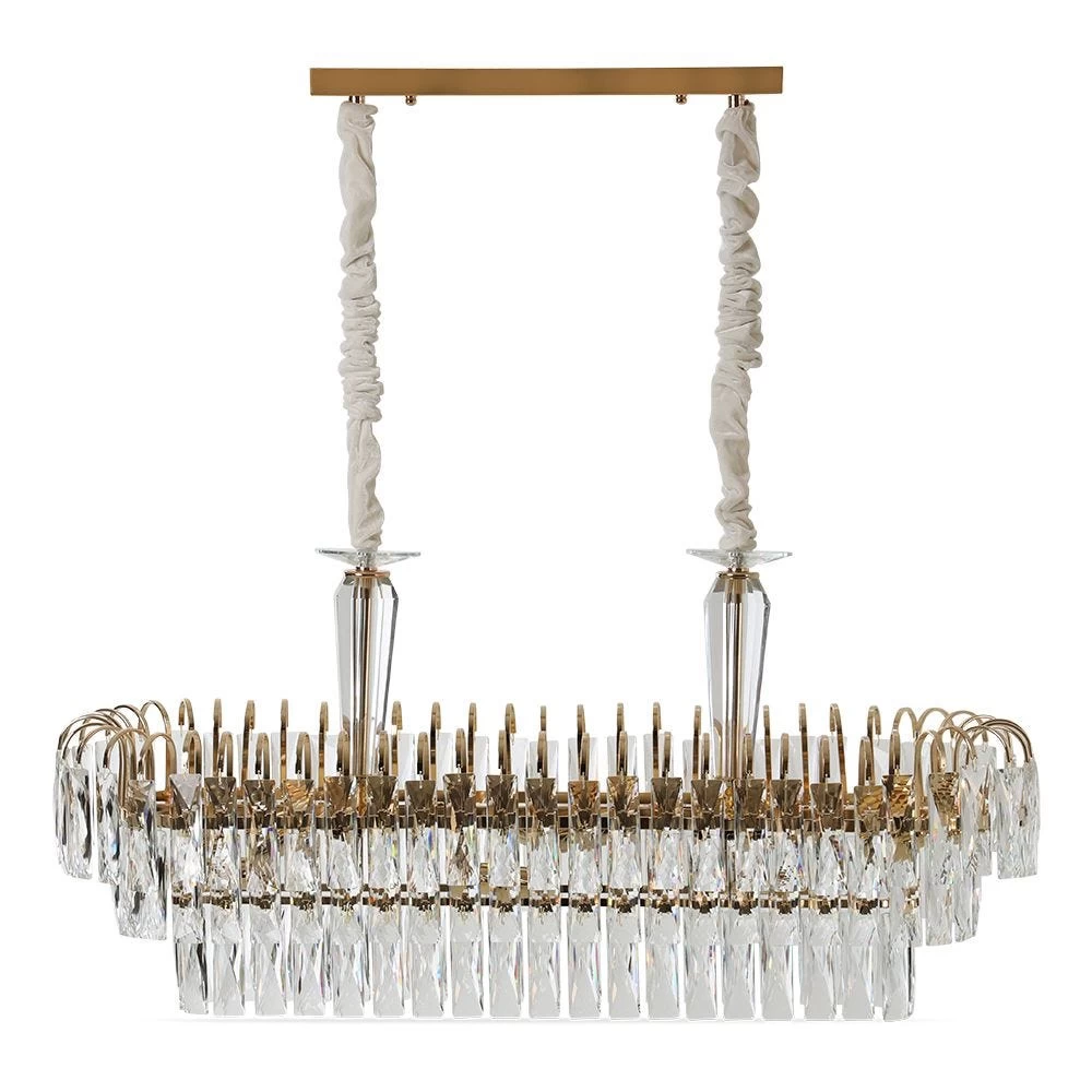 The cascading glass crystals of this pendant lamp create a spell-binding ambiance for your interior setting. The metal fixtures, donning an elegant French gold hue, amp up this magnificent light-emitting unit. Install this elegant pendant lamp and dim the lights of the surrounding for a relaxing evening.