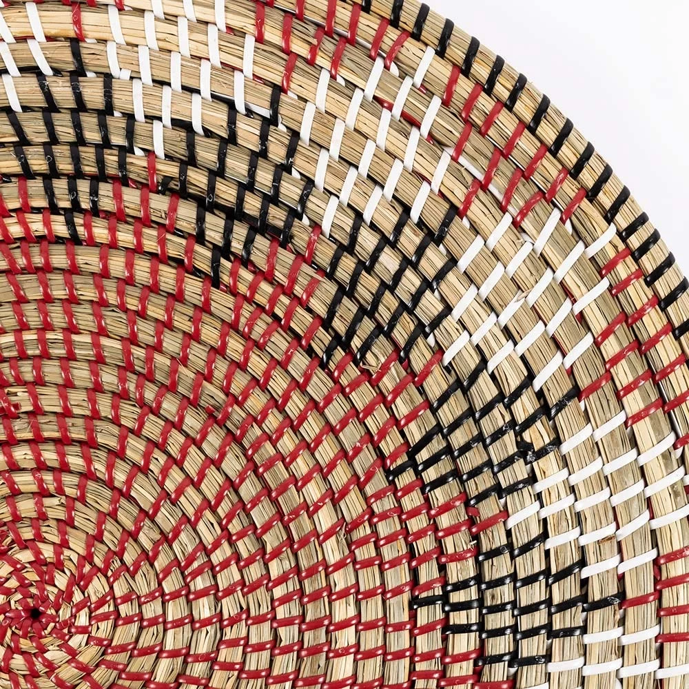 This wall decor artpiece is a masterful fusion of rustic charm and timeless elegance. Meticulously handcrafted by skilled craftsmen, it exudes a harmonious blend of graphic-yet-rustic charm. Made of premium seagrass and plastic materials, this dimensional wall art boasts a palette of natural, multi-colour hues that effortlessly infuse warmth and character into any room.