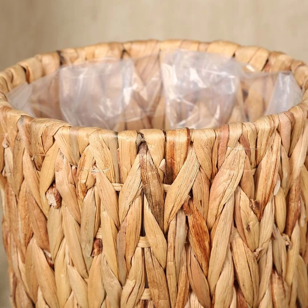 Handcrafted with natural water hyacinth, this planter pot has an engaging weave design to flaunt. Set atop tripod-style wooden legs, this planter pot infuses the charm of a cottagecore or modern farmhouse into your home.