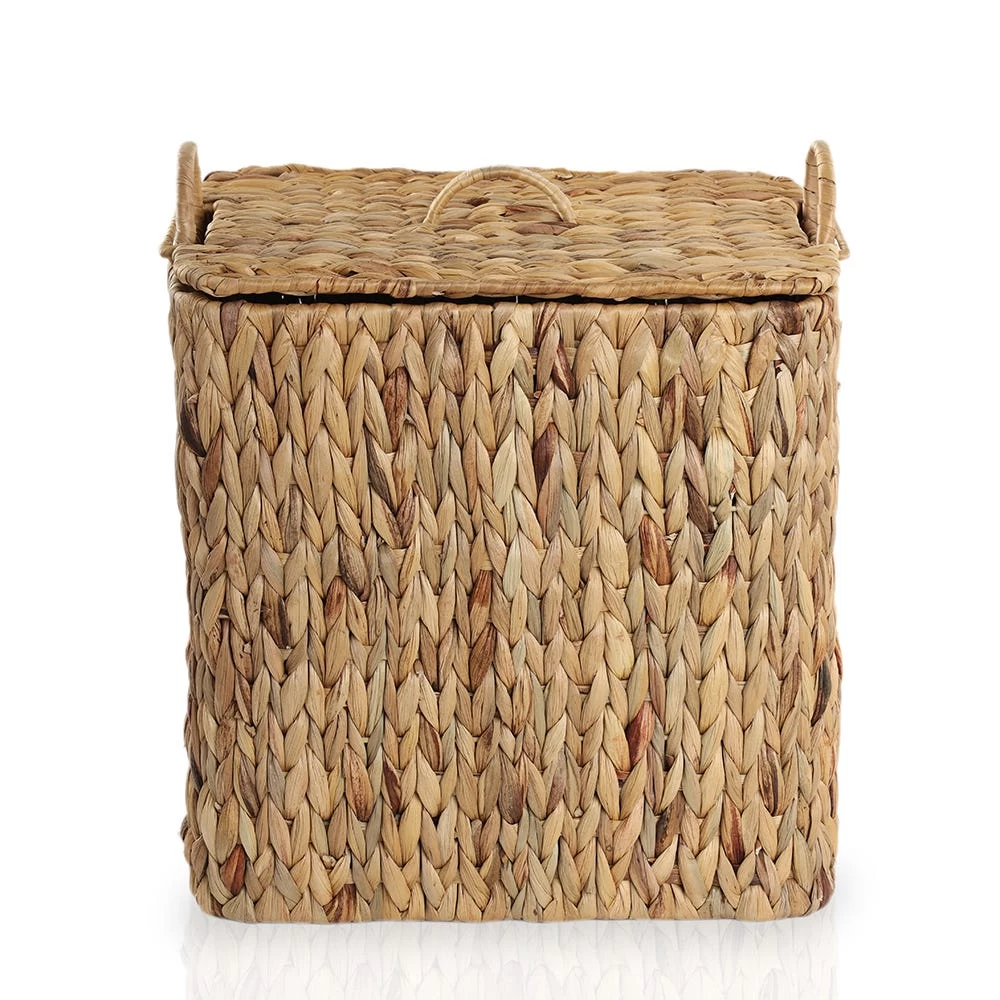 Perfect for storing multiple things, this tall basket is made from natural water hyacinth and comes with a lid. Feel free to keep your knick-knacks in it or use it as bathroom storage for your towels and bath sheets. This basket adds an organic texture to any bedroom or bath space.