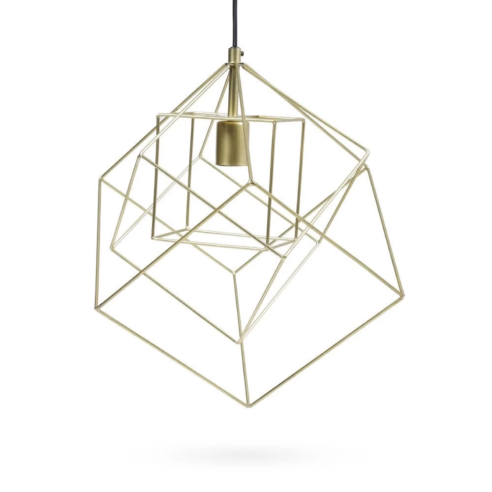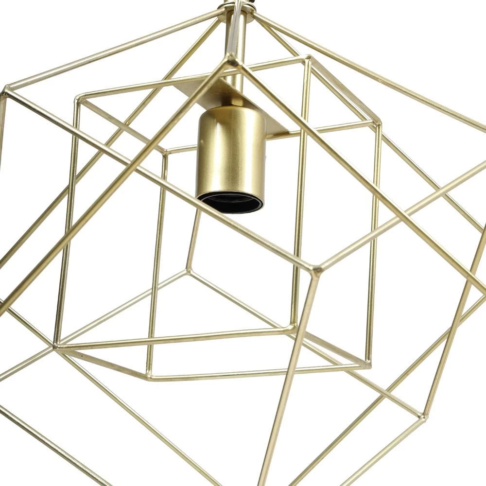 This geometrically appealing hanging lamp is designed with hints of contemporary sophistication to add to your modern home. The shiny brass hue adds to the charm of this piece, while the addition of an E27 bulb illuminates your space fascinatingly.