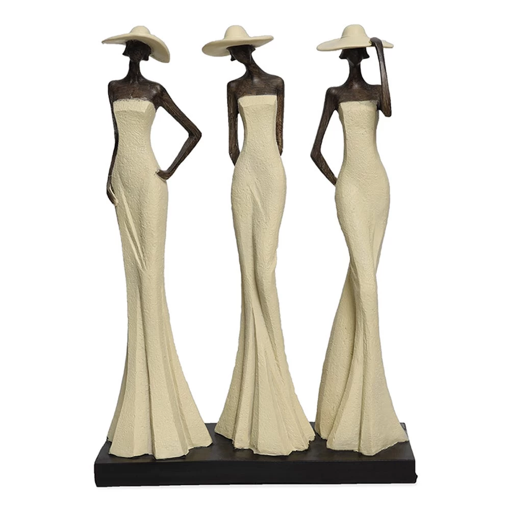 Beautifully sculpted, this figurine of three elegant women with long dresses and hats is sure to catch your eye. Set on a flat base, this handcrafted resin artwork elevates the charm of any modern space with its style and texture.