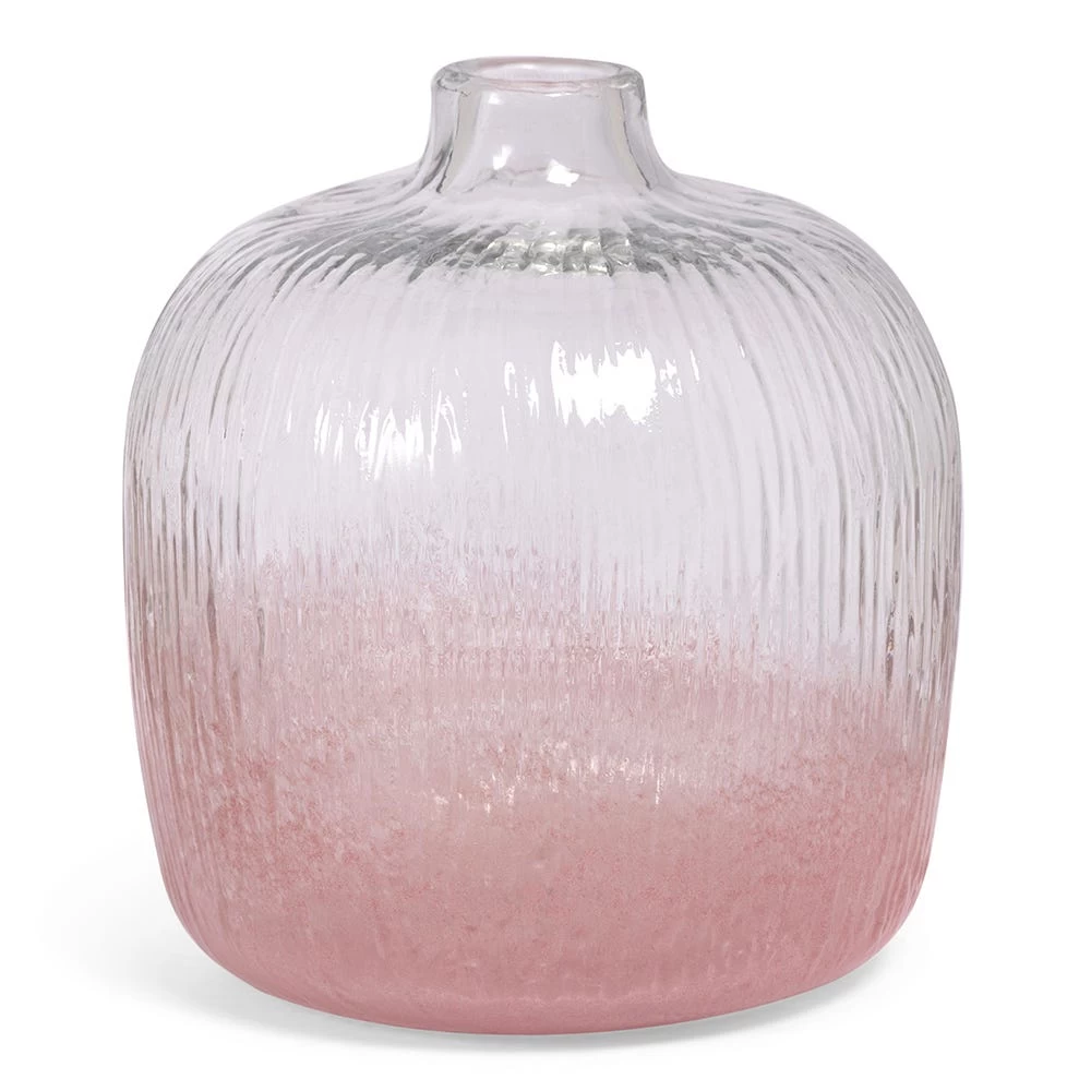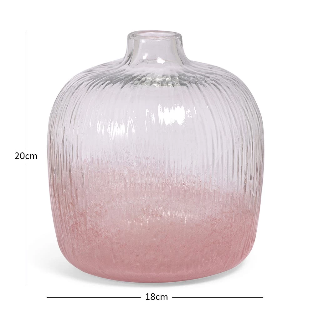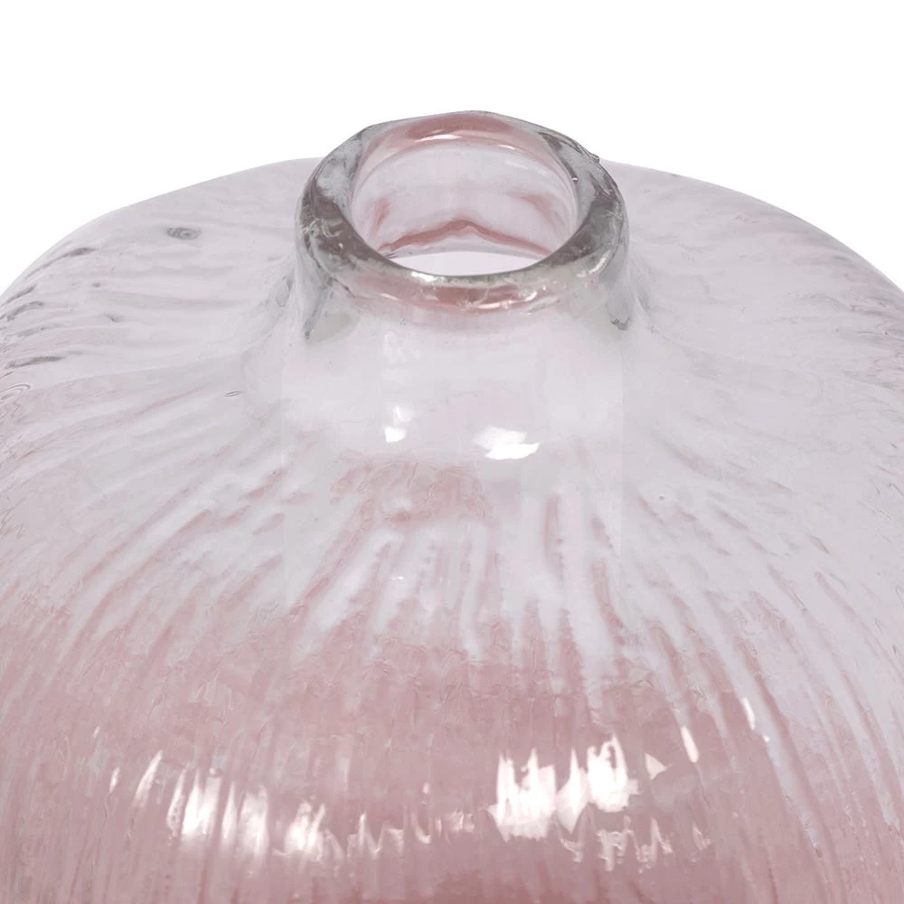 If you wish for a graceful and refined aesthetic for your home, this handmade glass vase is a perfect addition. Adorning a unique barrel-style design with a pink hue detailing towards the bottom, this vase exudes elegance.